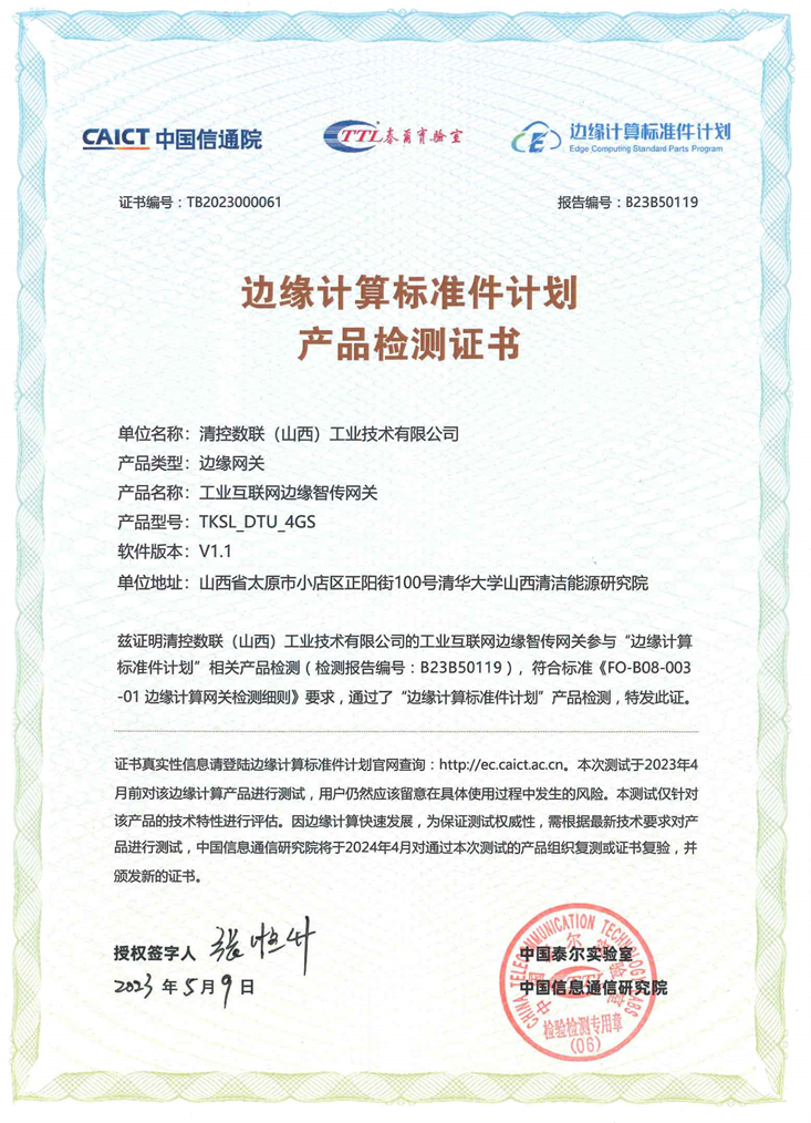 經(jīng)過中國信息通信研究院集中測試,清控數(shù)聯(lián)(山西)工業(yè)技術(shù)有限公司自主研發(fā)的工業(yè)互聯(lián)網(wǎng)邊緣智傳網(wǎng)關(guān)順利通過“邊緣計算標準件計劃”產(chǎn)品測試,并且在工廠能源、數(shù)字農(nóng)業(yè)等領域?qū)嶋H應用部署和持續(xù)穩(wěn)定運行,助力各行業(yè)企業(yè)應用升級,推動數(shù)字化建設落地。