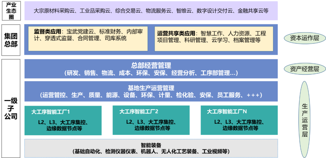 子公司資產(chǎn)經(jīng)營管理層面,包括各類公司經(jīng)營管理“產(chǎn)供銷”信息化、智慧化建設,大力推進一總部多基地、跨基地專業(yè)聚焦及矩陣式的管理協(xié)同的創(chuàng)新應用。