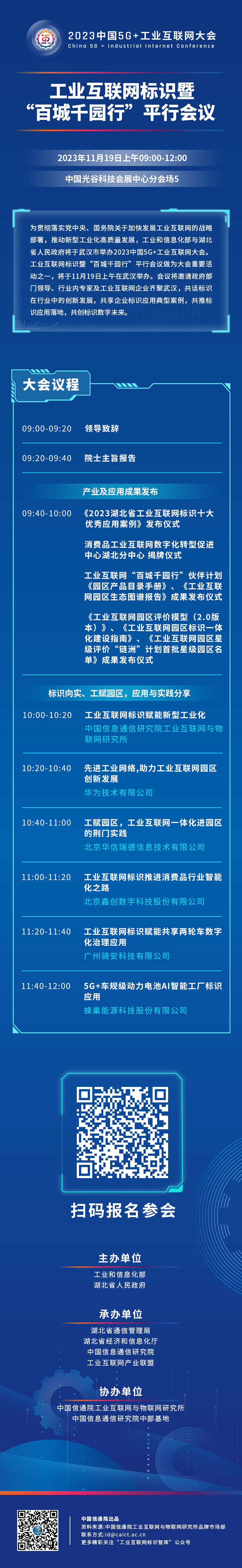 議程速覽 | 2023中國5G+工業(yè)互聯(lián)網(wǎng)大會工業(yè)互聯(lián)網(wǎng)標識暨“百城千園行”平行會議