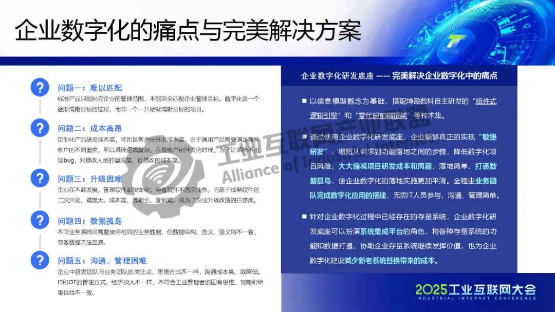 5月22日,在2025工業互聯網大會“新型工業控制與智能互操作發展專題活動”上,北京坤盈數科智能科技有限公司總經理張譽發表了《企業數字化研發底座》的主題演講。