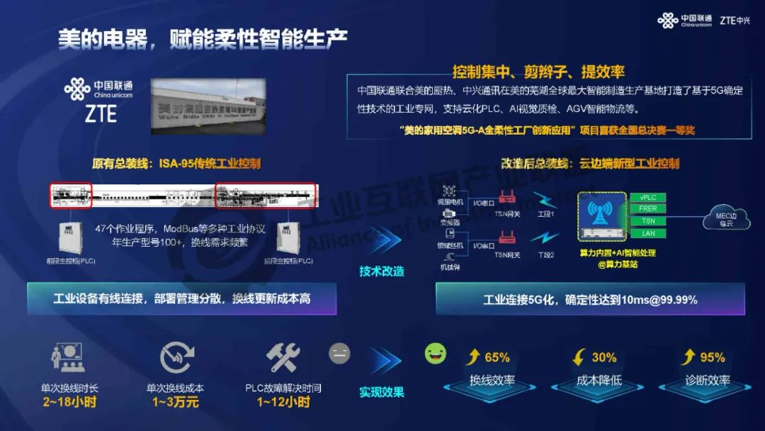 汪競飛介紹,中興通訊在工業(yè)互聯(lián)網(wǎng)領(lǐng)域提出"5G+算力"融合方案,重點解決三大核心問題:1)構(gòu)建云邊端協(xié)同的新型工業(yè)網(wǎng)絡(luò)體系,推出5G算網(wǎng)一體機,實現(xiàn)核心網(wǎng)、基站與行業(yè)應(yīng)用的預(yù)集成;2)提升工業(yè)級確定性,通過雙鏈路聚合等技術(shù)實現(xiàn)PLC控制4ms時延、5個9可靠性的商用能力;3)開發(fā)可視化運維平臺,使5G網(wǎng)絡(luò)像WiFi一樣簡單易用。典型案例顯示,該方案在武鋼熱軋車間實現(xiàn)高溫環(huán)境無人化作業(yè),在美的空調(diào)工廠降低30%換線時間,南京濱江工廠實現(xiàn)裝備聯(lián)網(wǎng)率97.6%、人均產(chǎn)值提升81%。中興將持續(xù)推進5G與工業(yè)場景深度融合,助力制造業(yè)數(shù)字化轉(zhuǎn)型。