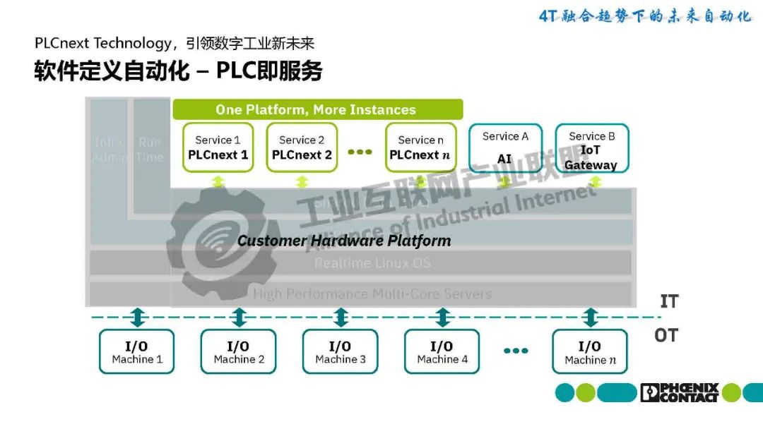 梁恩泉介紹,菲尼克斯電氣推出基于PLCnext技術的SoftPLC解決方案,突破傳統PLC硬件限制,實現虛擬化部署。該方案將PLC運行時環境(SoftPLC Runtime/eCLR)嵌入用戶硬件平臺,支持IEC 61131-3與C/C++等高級語言混合編程,并兼容工業機器人、數控機床等多場景需求。最新發布的PLCnext Virtual Control作為純軟件方案,可在通用硬件上動態創建PLC實例,實現功能靈活擴展和集中維護。該技術通過IT/OT深度融合,集成開源生態,為基礎設施、能源、工廠自動化等領域提供數字化底座,推動工業自動化進入"硬件平臺化、軟件服務化"的新階段。
