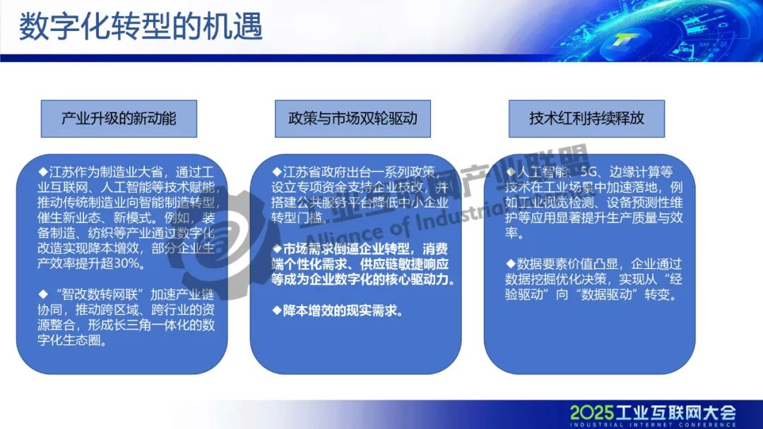 5月21日,在2025工業互聯網大會“工業互聯網產融合作專題活動”上,江蘇省經濟和信息化研究院副院長趙海建發表了《工業互聯網賦能江蘇制造業實現數字化轉型》的主題演講。