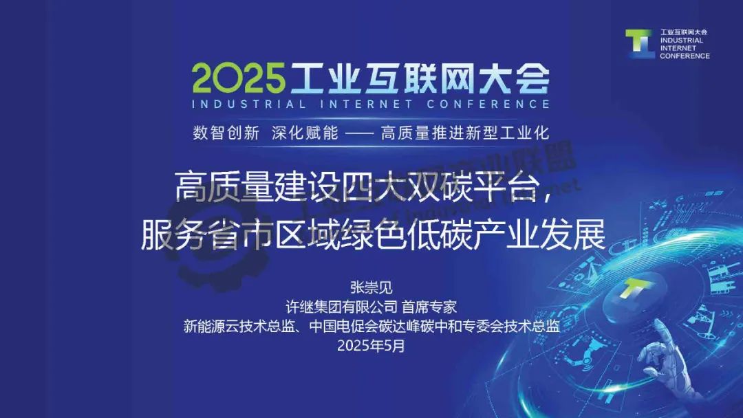 5月22日,在2025工業(yè)互聯(lián)網(wǎng)大會(huì)“工業(yè)數(shù)字化綠色化協(xié)同轉(zhuǎn)型專題活動(dòng)”上,工業(yè)互聯(lián)網(wǎng)產(chǎn)業(yè)聯(lián)盟碳達(dá)峰碳中和工作組副主席、許繼集團(tuán)有限公司首席專家、新能源云技術(shù)總監(jiān)、中國(guó)電促會(huì)雙碳專委會(huì)技術(shù)總監(jiān)張崇見(jiàn)發(fā)表了《高質(zhì)量建設(shè)四大雙碳平臺(tái),服務(wù)省市區(qū)域低碳綠色產(chǎn)業(yè)發(fā)展》的主題演講。