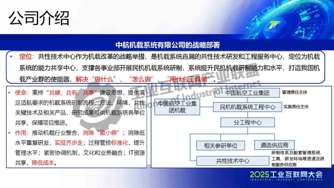 5月23日,在2025工業(yè)互聯(lián)網(wǎng)大會(huì)“工業(yè)可信數(shù)據(jù)空間發(fā)展專題活動(dòng)”上,中航機(jī)載系統(tǒng)共性技術(shù)有限公司云平臺(tái)與信息化研究室主任周振興發(fā)表了《航空機(jī)械行業(yè)實(shí)踐分享》的主題演講。