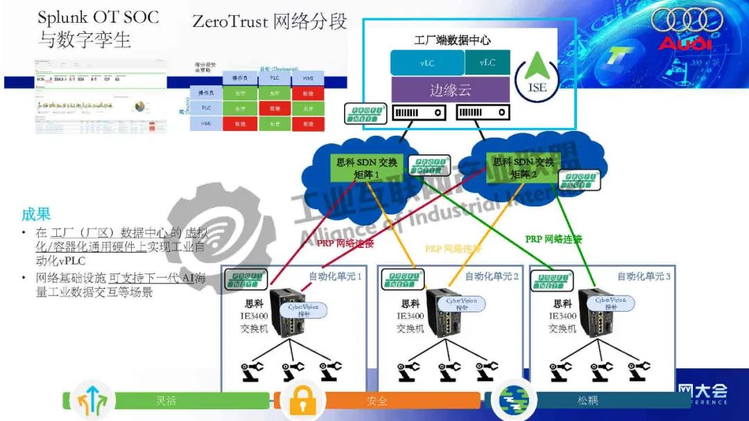 凌軍介紹,思科的工業安全解決方案旨在打通從工控現場感知到OT安全運營中心的完整安全鏈條,通過模擬化工廠PLC攻擊場景,生動展示了工業網絡脆弱性和工業安全的重要性。思科建議基于全技術棧和業界最佳實踐,實現OT資產的動態可視化、網絡分段和零信任訪問,并利用Cyber Vision和ISE認證平臺進行OT設備分類與風險評分,統一在Splunk SOC平臺形成統一工業安防儀表盤。制造企業需結合OT可視化、網絡分段和OT SOC能力,構建涵蓋威脅檢測到事件響應的綜合性安全體系,以應對未來工業網絡的安全挑戰。