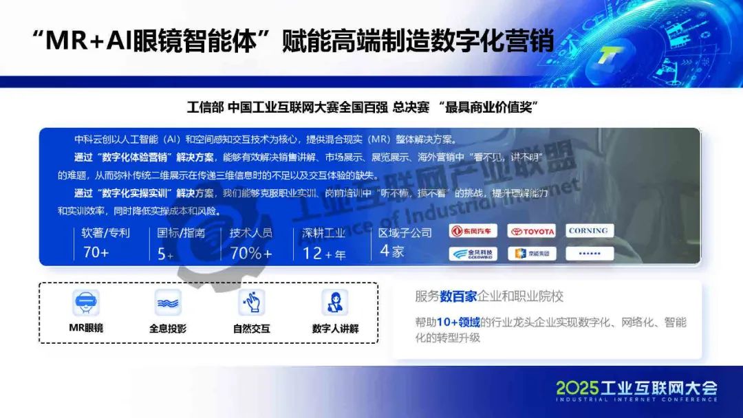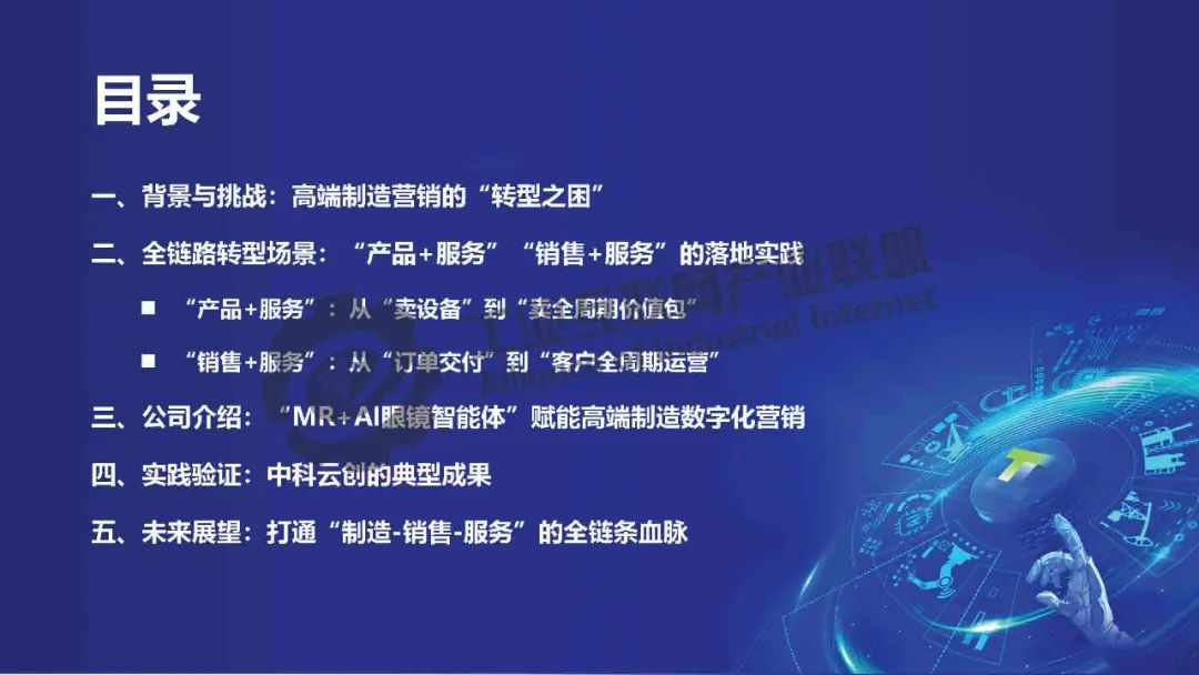 王哲介紹,中科云創(chuàng)針對高端制造營銷轉(zhuǎn)型困境,提出"產(chǎn)品+服務(wù)"和"銷售+服務(wù)"全鏈路解決方案,推動從單純賣設(shè)備向全周期價(jià)值服務(wù)升級,通過"MR+AI眼鏡智能體"技術(shù)賦能,實(shí)現(xiàn)從訂單交付到客戶全周期運(yùn)營的數(shù)字化營銷轉(zhuǎn)型,典型實(shí)踐驗(yàn)證了其有效性,未來將致力于打通"制造-銷售-服務(wù)"全鏈條協(xié)同。