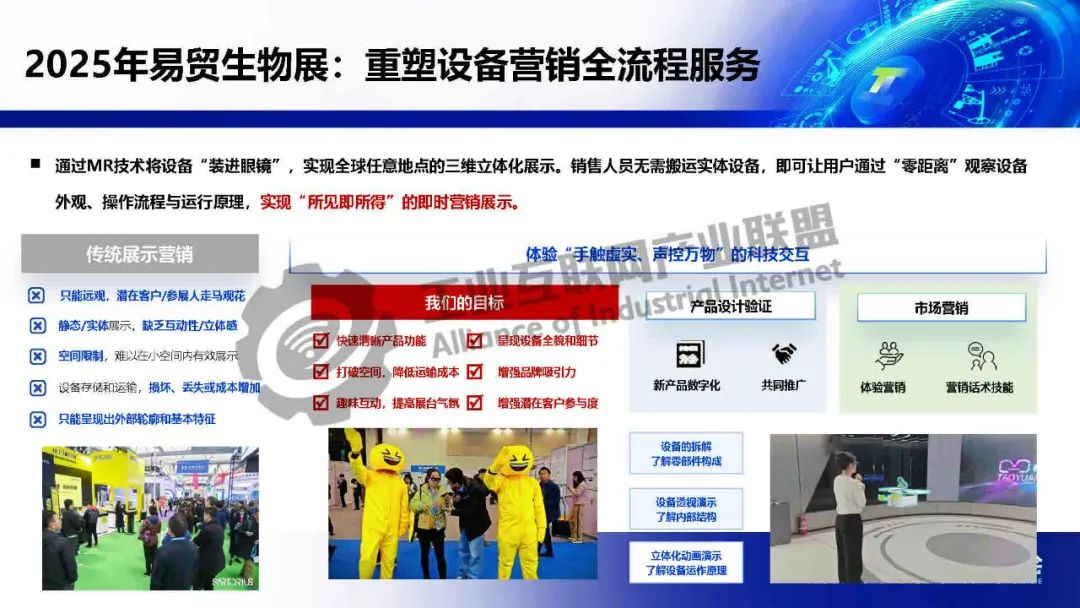 設(shè)備營銷全流程服務(wù)打破傳統(tǒng)營銷方式,通過MR技術(shù)將設(shè)備“裝進(jìn)眼鏡”,實(shí)現(xiàn)全球任意地點(diǎn)的三維立體化展示。銷售人員無需搬運(yùn)實(shí)體設(shè)備,即可讓用戶通過“零距離”觀察設(shè)備外觀、操作流程與運(yùn)行原理,實(shí)現(xiàn)“所見即所得”的即時(shí)營銷展示。