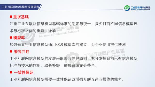 信息模型將能推動工業(yè)互聯(lián)網(wǎng)高質(zhì)量發(fā)展。工業(yè)互聯(lián)網(wǎng)的規(guī)范發(fā)展需要打破信息孤島現(xiàn)象,當前工廠內(nèi)網(wǎng)信息交互方式不統(tǒng)一,尚未實現(xiàn)全產(chǎn)業(yè)鏈、全價值鏈的全面連接。信息模型將有效提高工業(yè)互聯(lián)網(wǎng)信息應用效率,建立信息之間的關聯(lián)關系,提供標準化的信息格式,提供規(guī)范的信息建模流程,提供統(tǒng)一的信息呈現(xiàn)形式。工業(yè)互聯(lián)網(wǎng)先進技術的應用對信息流動的要求將會更高,信息模型能夠促進信息互聯(lián)互通互操作的實現(xiàn),其作用也會隨著工業(yè)互聯(lián)網(wǎng)的發(fā)展越來越凸顯。