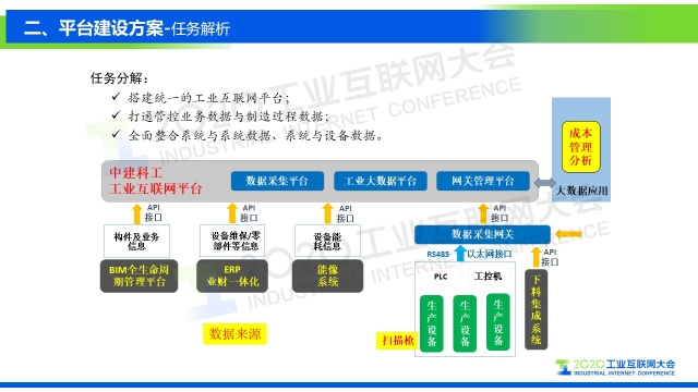 8月31日上午,在2020工業互聯網大會“工業互聯網成果發布”主題論壇上,中建科工集團有限公司信息化部總經理王劍濤以《基于工業互聯網的大數據分析平臺 - 生產成本分析》為題作演講,分享了中建科工在工業互聯網放馬的一些應用和探索。