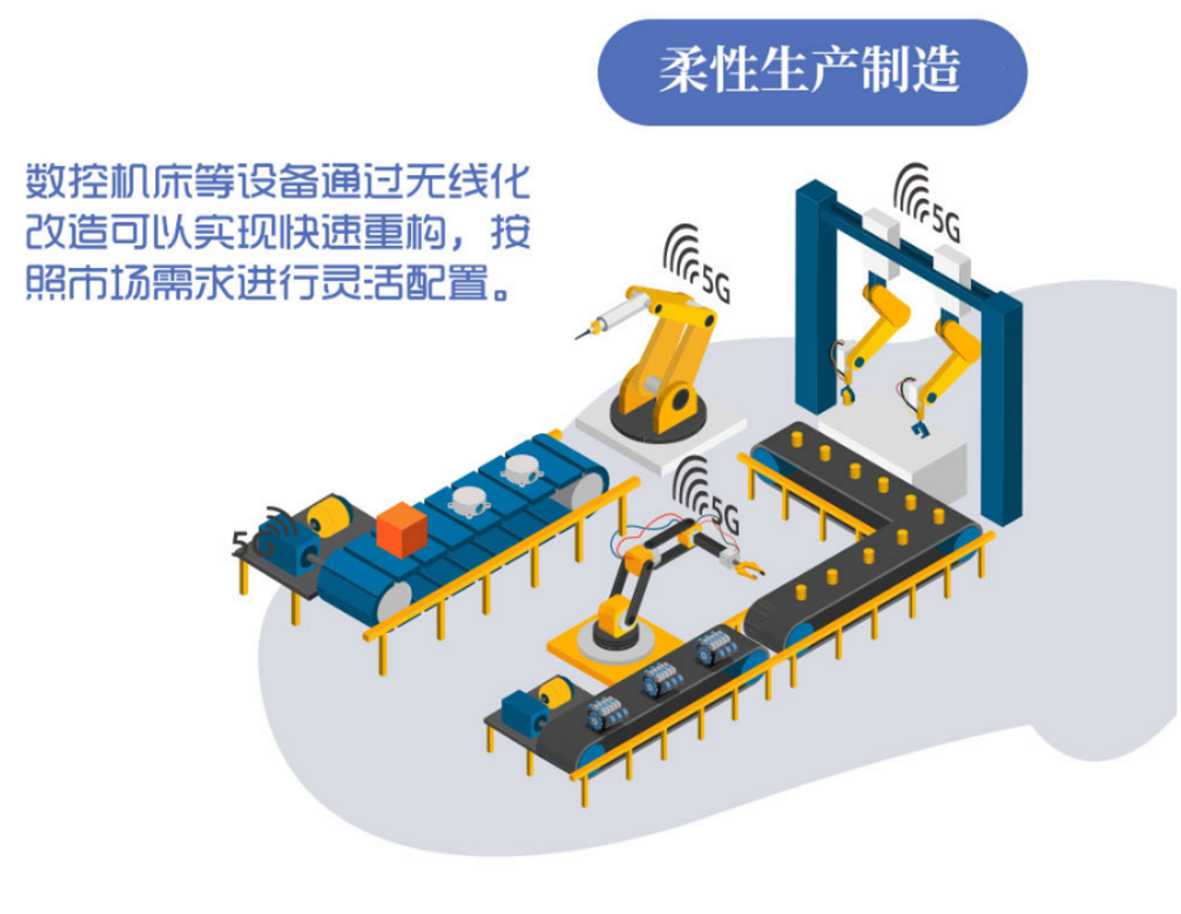 企業(yè)生產(chǎn)設(shè)備高度自動(dòng)化、智能化,生產(chǎn)線可根據(jù)要求進(jìn)行設(shè)備自主組合和參數(shù)自動(dòng)配置,現(xiàn)場實(shí)現(xiàn)5G網(wǎng)絡(luò)覆蓋,設(shè)備具有 5G 網(wǎng)絡(luò)接入能力。