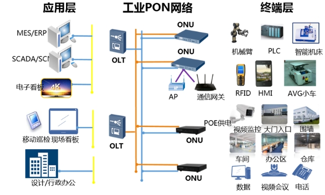 工業(yè)PON技術(shù)相比傳統(tǒng)以太網(wǎng)交換機技術(shù),是一套全新的安全、可靠、融合、先進的工業(yè)網(wǎng)絡綜合解決方案,是工廠內(nèi)車間數(shù)據(jù)采集組網(wǎng)的全新方案。