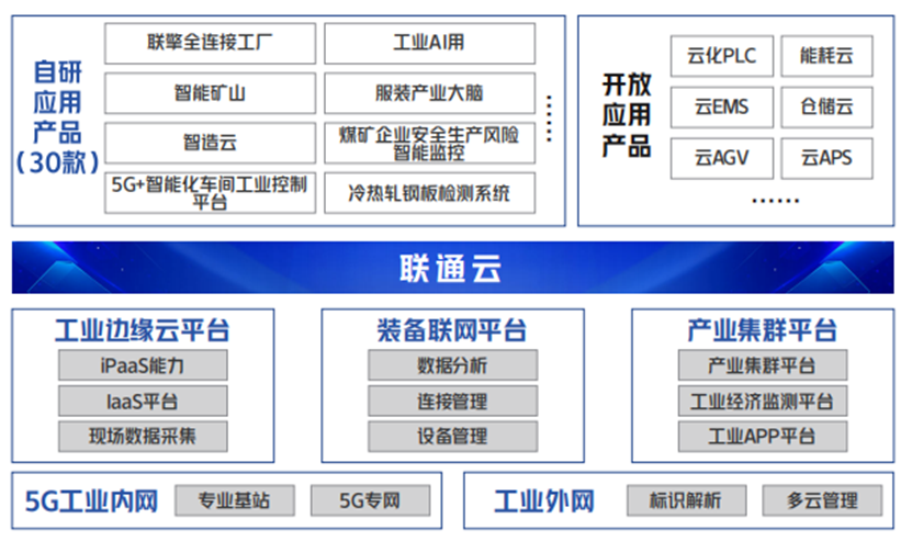 為進(jìn)一步推動(dòng)“5G+工業(yè)互聯(lián)網(wǎng)”實(shí)現(xiàn)規(guī)模和價(jià)值的雙重躍升。中國聯(lián)通一直致力于打造“5G+工業(yè)互聯(lián)網(wǎng)”第一品牌,依托運(yùn)營商云網(wǎng)優(yōu)勢,歷經(jīng)多年實(shí)踐,整合生態(tài)資源,初步形成了“一朵云、兩張網(wǎng)、三平臺(tái)”的工業(yè)互聯(lián)網(wǎng)產(chǎn)品能力體系打造了30款自研應(yīng)用產(chǎn)品,形成完整的端到端產(chǎn)品體系。目前已經(jīng)深入裝備制造、服裝、礦山、汽車、鋼鐵、計(jì)算機(jī)電子、家電、石油化工、電力熱力、建材、港口等11大行業(yè),與合作伙伴攜手加速傳統(tǒng)產(chǎn)業(yè)向數(shù)字化、網(wǎng)絡(luò)化、智能化方向轉(zhuǎn)型升級(jí)。