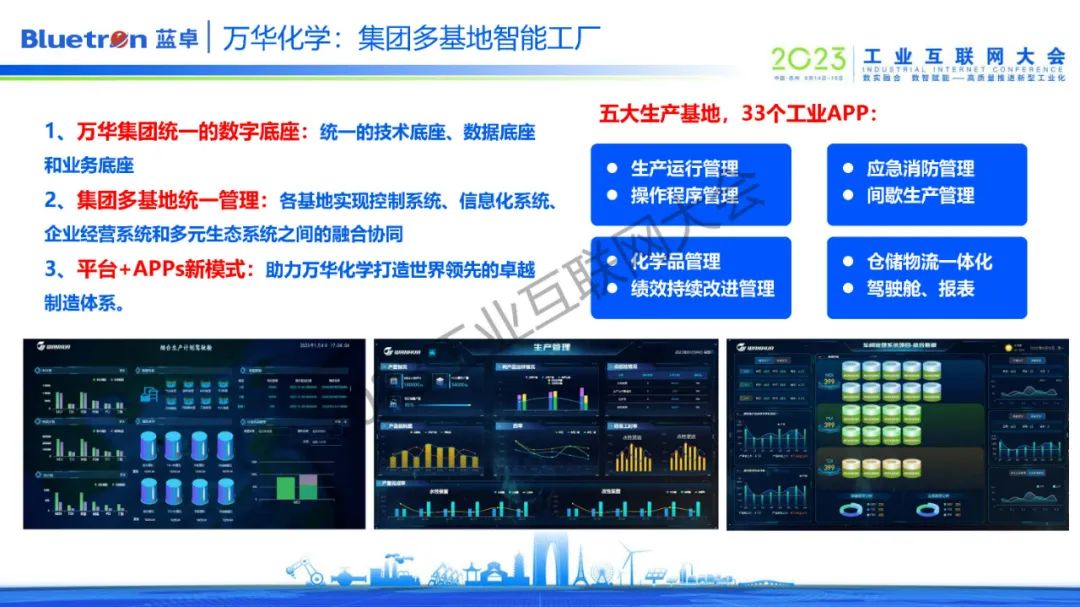 萬華集團是典型的一總部、多基地式集團企業,通過supOS工業操作系統打造統一的技術底座、數據底座和業務底座,滿足萬華集團以及各個生產基地的生產數據、管理數據、運營數據的集中管理、治理、分析與應用開發需求。目前,一集團多租戶模式已成功應用于煙臺、寧波、福州、珠海、眉山五個基地,并打造了生產運行管理、應急消防管理、化學品管理、倉儲物流一體化等33個工業APPs,助力萬華打造世界領先的卓越制造體系。