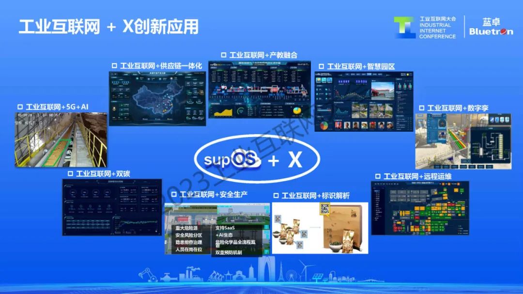 基于工業操作系統的特性,藍卓也在探索supOS+X的創新應用模式,在工業互聯網+產教融合、工業互聯網+5G、工業互聯網+雙碳、工業互聯網+安全生產、工業互聯網+數字孿生等場景化的創新模式上,藍卓都有非常豐富的應用案例。