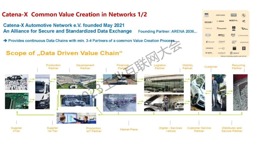 郭裕根介紹了工業(yè)領(lǐng)域的最新動向,提出自主性的核心就是提供數(shù)據(jù)空間服務(wù),從而創(chuàng)造價值。同時也分享了基于數(shù)據(jù)共享的價值生成的關(guān)鍵應(yīng)用案例,包括控制柜、共享生產(chǎn)智能 MA-X、Eclipse DataSpace 連接器等,最后介紹了汽車行業(yè)的工業(yè)創(chuàng)新,從材料供應(yīng)到開發(fā)再到制造,合作伙伴、供應(yīng)商和智能汽車客戶整合起來,還有回收商拆卸汽車零部件,實(shí)現(xiàn)材料循環(huán)利用。