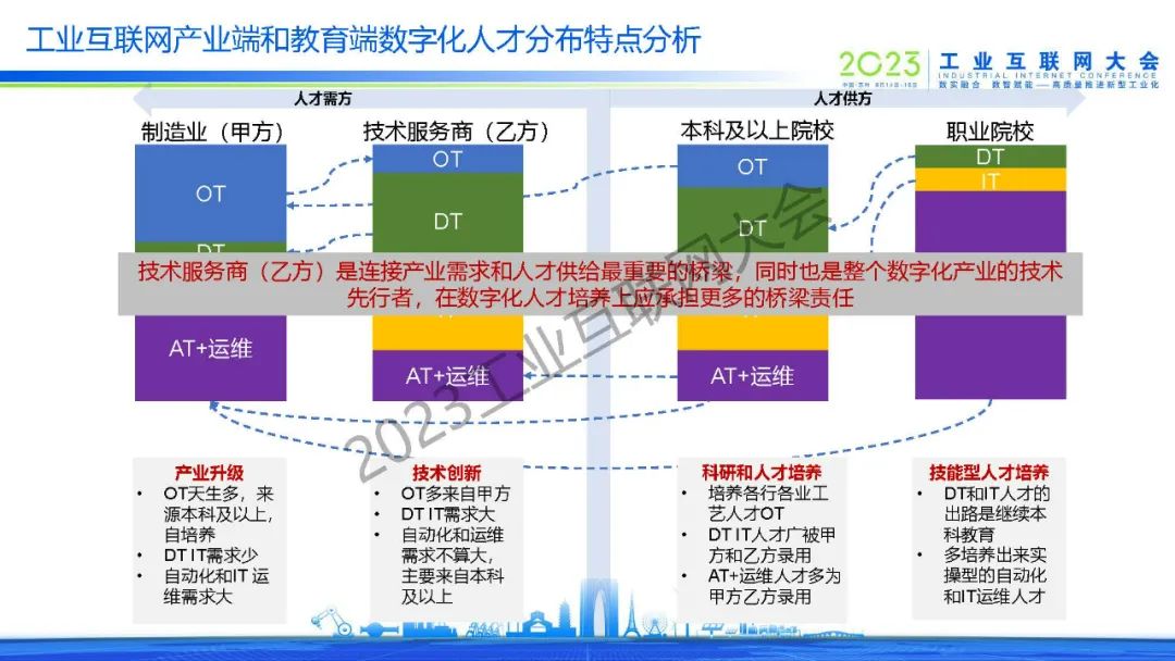 李志芳表示,技術服務商(乙方)是連接產(chǎn)業(yè)需求和人才供給最重要的橋梁,同時也是整個數(shù)字化產(chǎn)業(yè)的技術先行者,在數(shù)字化人才培養(yǎng)上應承擔更多的橋梁責任。優(yōu)也推動數(shù)字化人才培養(yǎng)中,以實訓基地為橋梁平臺,融通企業(yè)和院校需求,通過產(chǎn)業(yè)拉動教育,更貼近產(chǎn)業(yè)的實際需求,也運用實際生產(chǎn)環(huán)境的工業(yè)協(xié)議和工業(yè)網(wǎng)絡教具、真正的工業(yè)互聯(lián)網(wǎng)平臺到教學中。