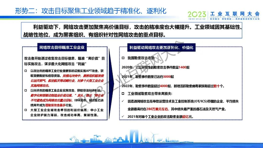 柯皓仁表示,工業互聯網在推動數字經濟和實體經濟深度融合過程中,其網絡安全能力既是基礎支撐,是實現高質量發展的必要前提,也是賦能增量,是助推數字化進程的重要動能。數字化轉型加速工業互聯網安全體系化布局,以 IT 視角為主的安全產品和服務難以滿足工業互聯網的實際需求,工業互聯網安全技術產品將向工業場景下沉,不斷融合業務流程和企業定制化需求。