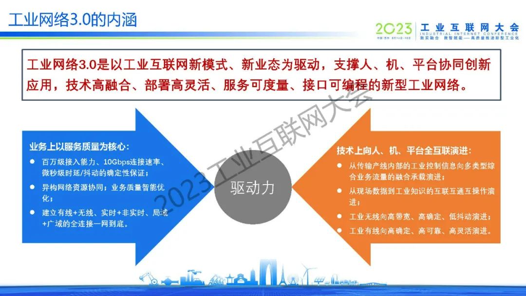 “工業網絡3.0是以工業互聯網新模式、新業態為驅動,支撐人、機、平臺協同創新應用,技術高融合、部署高靈活、服務可度量、接口可編程的新型工業網絡。“
