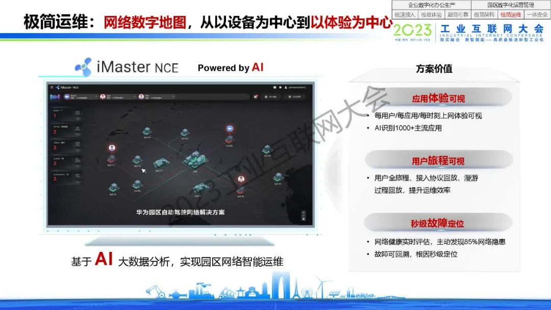 程劍表示,產業園區正進入智慧化4.0時代,園區ICT基礎設施正進入集約化建設模式,企業數字化正在從辦公場景延伸到生產場景。企業數字化辦公生產需要做到極速接入,極致體驗和超高可靠。園區數字化運營管理需要做到極簡架構,極簡運維和一體安全。