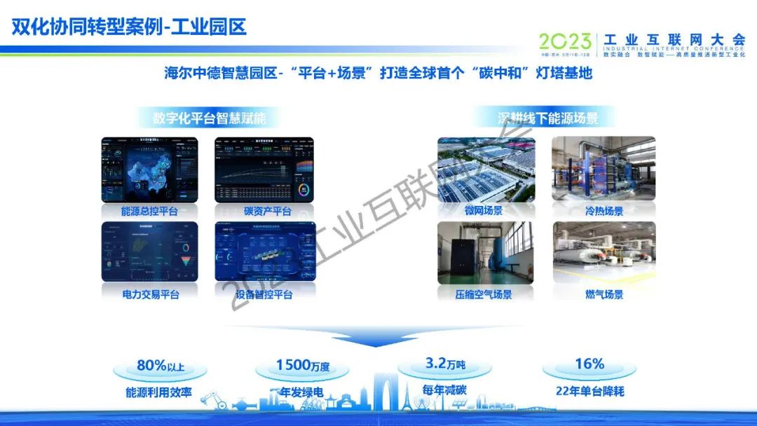 楊子江表示,數字化綠色化協同是企業高質量發展的必然選擇,未來能源產業實現雙化協同發展路徑。卡奧斯工業互聯網平臺源于海爾創新實踐,已形成線上數字平臺+線下綠色場景業務模式。在縣區政府、工業園區、綠色化等應用場景打造多個雙化協同的轉型案例。