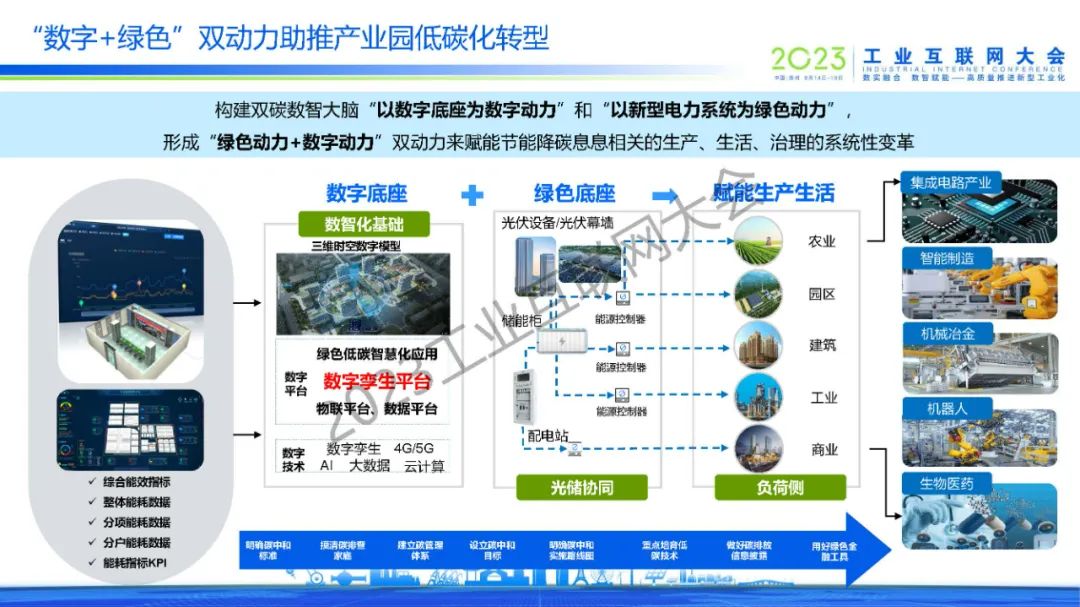 李竹青指出,園區(qū)是為了實現(xiàn)產(chǎn)業(yè)發(fā)展等功能性目標,由政府、企業(yè)或者其他組織機構(gòu)創(chuàng)立的特殊區(qū)位結(jié)構(gòu)。作為城市的基本單元,園區(qū)是最重要的人口和產(chǎn)業(yè)聚集區(qū)是最主要的經(jīng)濟和社會活動承載的空間載體。構(gòu)建雙碳數(shù)智大腦“以數(shù)字底座為數(shù)字動力”和“以新型電力系統(tǒng)為綠色動力“,形成“綠色動力+數(shù)字動力”雙動力來賦能節(jié)能降碳息息相關(guān)的生產(chǎn)、生活、治理的系統(tǒng)性變革。
