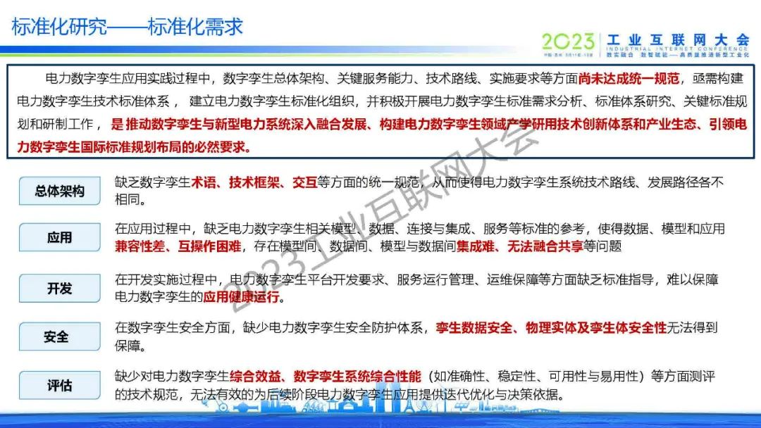 李哲指出,數字孿生模型構建實現數字孿生體的的定義、組裝、構建的全過程服務,實現對新型電力系統中設備實體、單元及系統功能特性的數字化、可視化表達。目前,電力數字孿生應用實踐過程中,數字孿生總體架構、關鍵服務能力、技術路線、實施要求等方面尚未達成統一規范,亟需構建電力數字孿生技術標準體系,建立電力數字孿生標準化組織,并積極開展電力數字孿生標準需求分析、標準體系研究、關鍵標準規劃和研制工作,是推動數字孿生與新型電力系統深入融合發展、構建電力數字孿生領域產學研用技術創新體系和產業生態、引領電力數字孿生國際標準規劃布局的必然要求。
