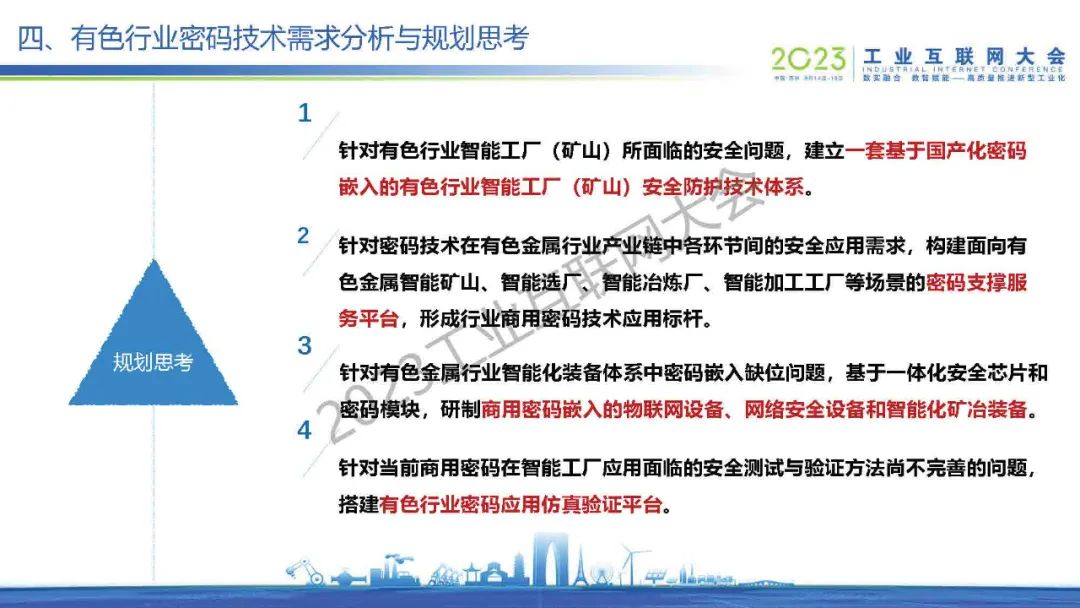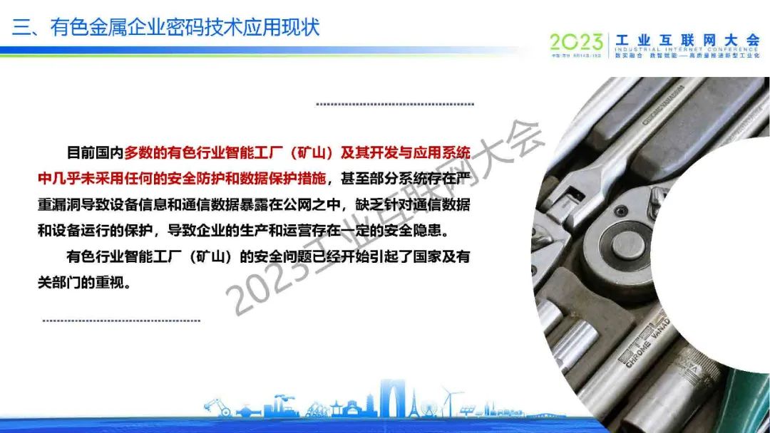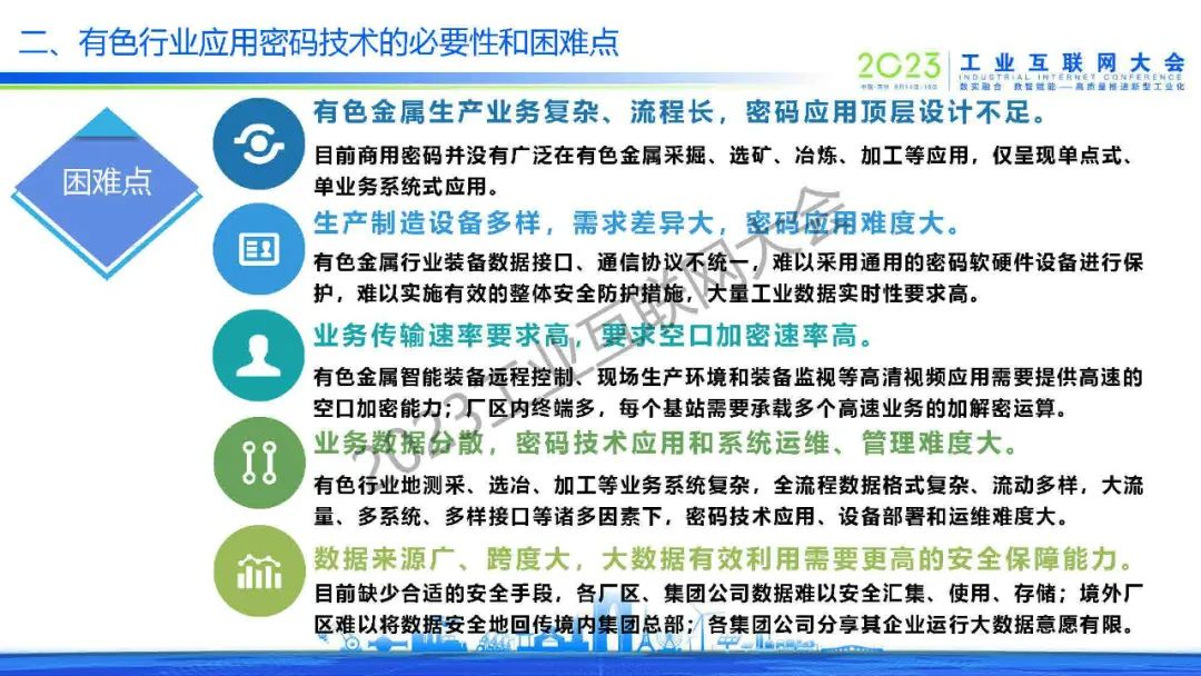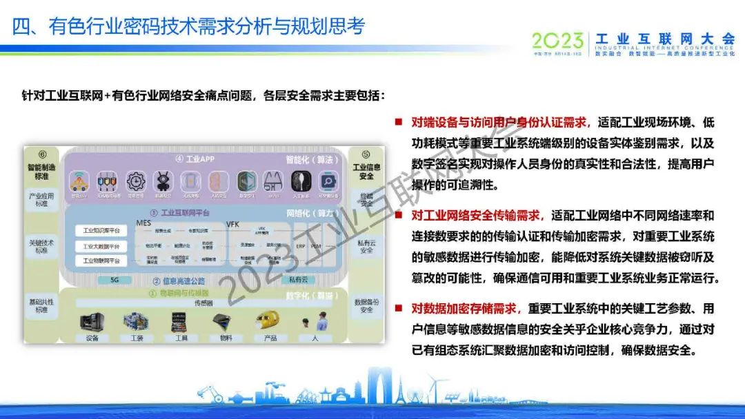 6月14日,在2023工業互聯網大會“工業互聯網密碼創新應用論壇”上,礦冶科技集團有限公司北礦智能科研部經理馬朝陽發表了《有色金屬行業密碼技術應用現狀與需求分析》的主題演講。