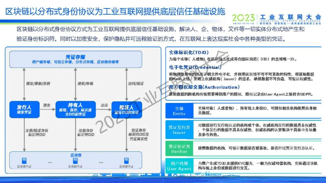 敖萌表示,區(qū)塊鏈以分布式身份協(xié)議方式為工業(yè)互聯(lián)網(wǎng)提供底層信任基礎(chǔ)設(shè)施,解決人、企、物體,文件等一切實(shí)體分布式地產(chǎn)生和驗(yàn)證身份標(biāo)識符。同時(shí)以加密安全,保護(hù)隱私并可遠(yuǎn)程驗(yàn)證的方式,在互聯(lián)網(wǎng)上表達(dá)現(xiàn)實(shí)社會(huì)中各種類型的憑證。