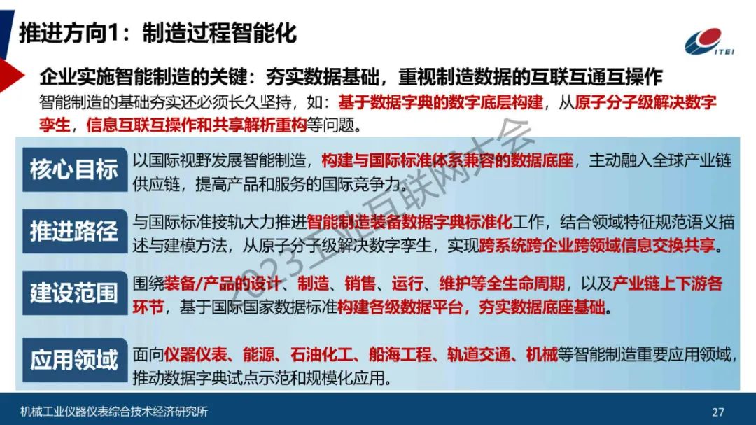 6月16日,在2023工業互聯網大會“工業互聯網與裝備制造行業融合應用論壇”上,機械工業儀器儀表綜合技術經濟研究所所長、國家智能制造專家委員會副主任歐陽勁松發表了《智能制造發展的思考與建議》的主題演講。