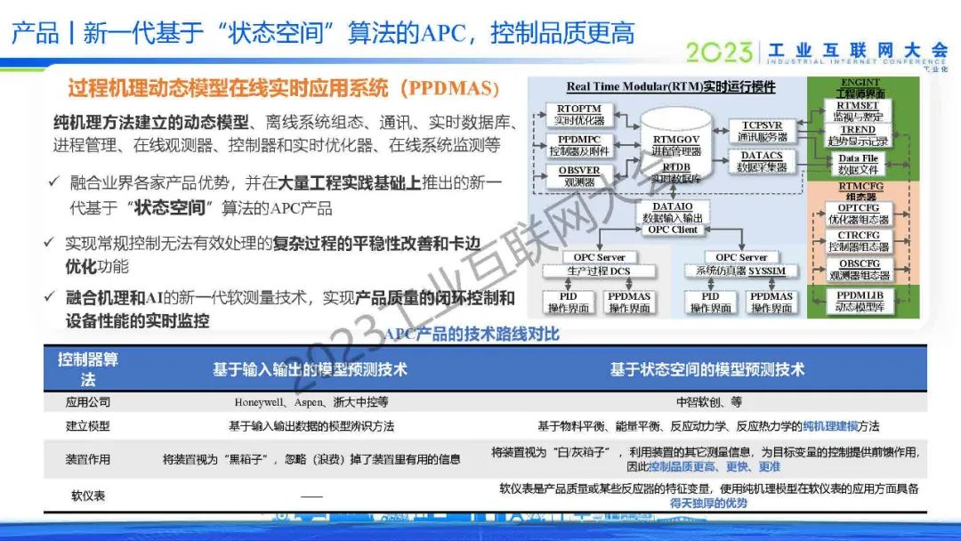 “APC是融合業界各家產品優勢,并在大量工程實踐基礎上推出的新一代基于“狀態空間”算法的產品,實現常規控制無法有效處理的復雜過程的平穩性改善和卡邊優化功能,融合機理和AI的新一代軟測量技術,實現產品質量的閉環控制和設備性能的實時監控。控制品質更高。”