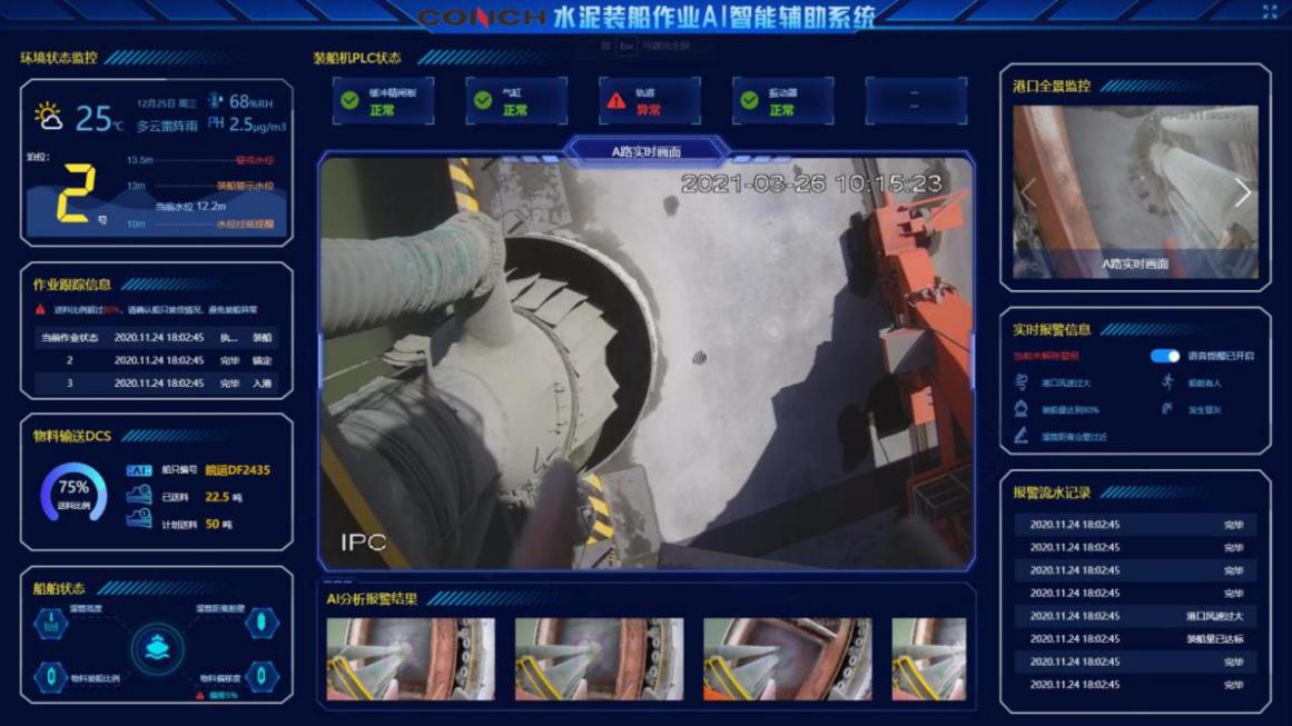 安徽海螺集團有限責任公司與中國電信合作,開展了“5G+AI+智慧裝船”項目建設,實現了精準動態作業場景的應用。通過搭建多視角相機,確定不同相機間同一物體的對應關系,根據三角測量原理,實時監測水泥船位置以及裝船機溜筒位置和姿態,包括船舷位置、溜筒距船舷偏移比例、物料偏移度等。對數據進行AI分析,并通過5G網絡將結果與預警信息傳送到指揮調度中心,基于中心控制算法.發送指令到裝船機可編程邏輯控制器(PLC),實時控制裝船機作業,避免因位置不當引起碰壁、冒灰和其他視野受限情況,實現對裝船作業的全流程監控。項目實施后,生產效率提升70%,人員安全事故數降低到0。