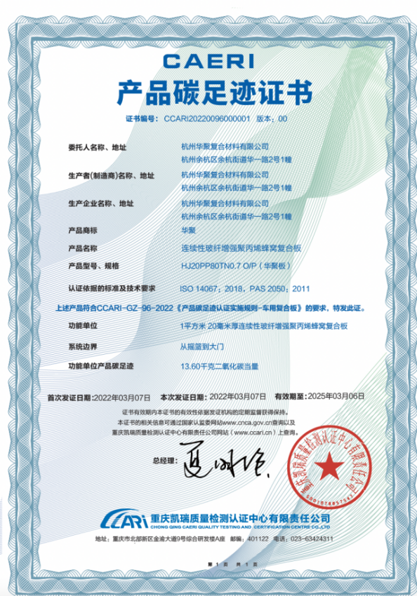 碳足跡是基于全生命周期評價方法而量化出產品及技術所造成的溫室氣體影響,確定碳足跡是減少碳排放行為的第一步, 它能幫助企業辨識自己在產品生命周期中主要的溫室氣體排放過程, 以利于制定有效的碳減排方案。本場景是面向新材料領域的產品碳足跡認證,通過對最具有代表性的20mm厚的熱塑性蜂窩板的碳足跡計算和認證實現場景落地。本場景基于全生命周期建模理論,實現了對產品的碳足跡模型建立、數據收集、碳足跡評價、報告編制和產品碳足跡報告認證,幫助企業實現產品碳足跡的全面評價,為后續為企業實現減排目標和持續減排方案提供了基礎,通過碳足跡幫助企業在同類產品形成區別,對于企業聲譽提升和引導綠色消費提供幫助,在外貿場景下,能夠為企業避免碳關稅帶來的出口困難。