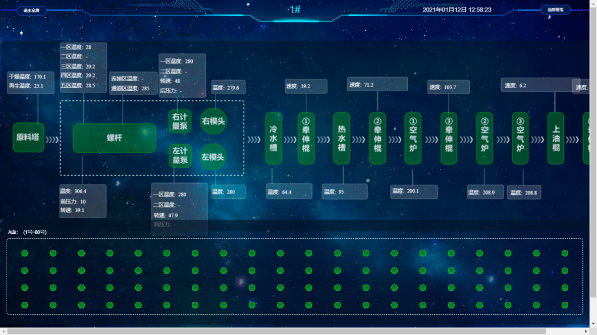 第一,打造了新華膠絲廠能源數(shù)字工廠。通過能耗在線監(jiān)測系統(tǒng)實現(xiàn)對新華膠絲廠生產(chǎn)過程中能源消耗進(jìn)行監(jiān)測和生產(chǎn)批次管理數(shù)據(jù)對接,實時顯示新華膠絲廠4條生產(chǎn)線能耗、單耗等數(shù)據(jù),組態(tài)化大屏形式展示關(guān)注的能源指標(biāo),實現(xiàn)獨立靈活自適配,符合各種生產(chǎn)實際場景需求。任意關(guān)鍵數(shù)據(jù)指標(biāo)適配;豐富圖表、設(shè)備組件;配置靈活,即時生效,靈活調(diào)整;實時業(yè)務(wù)指標(biāo)、視頻監(jiān)控融合。