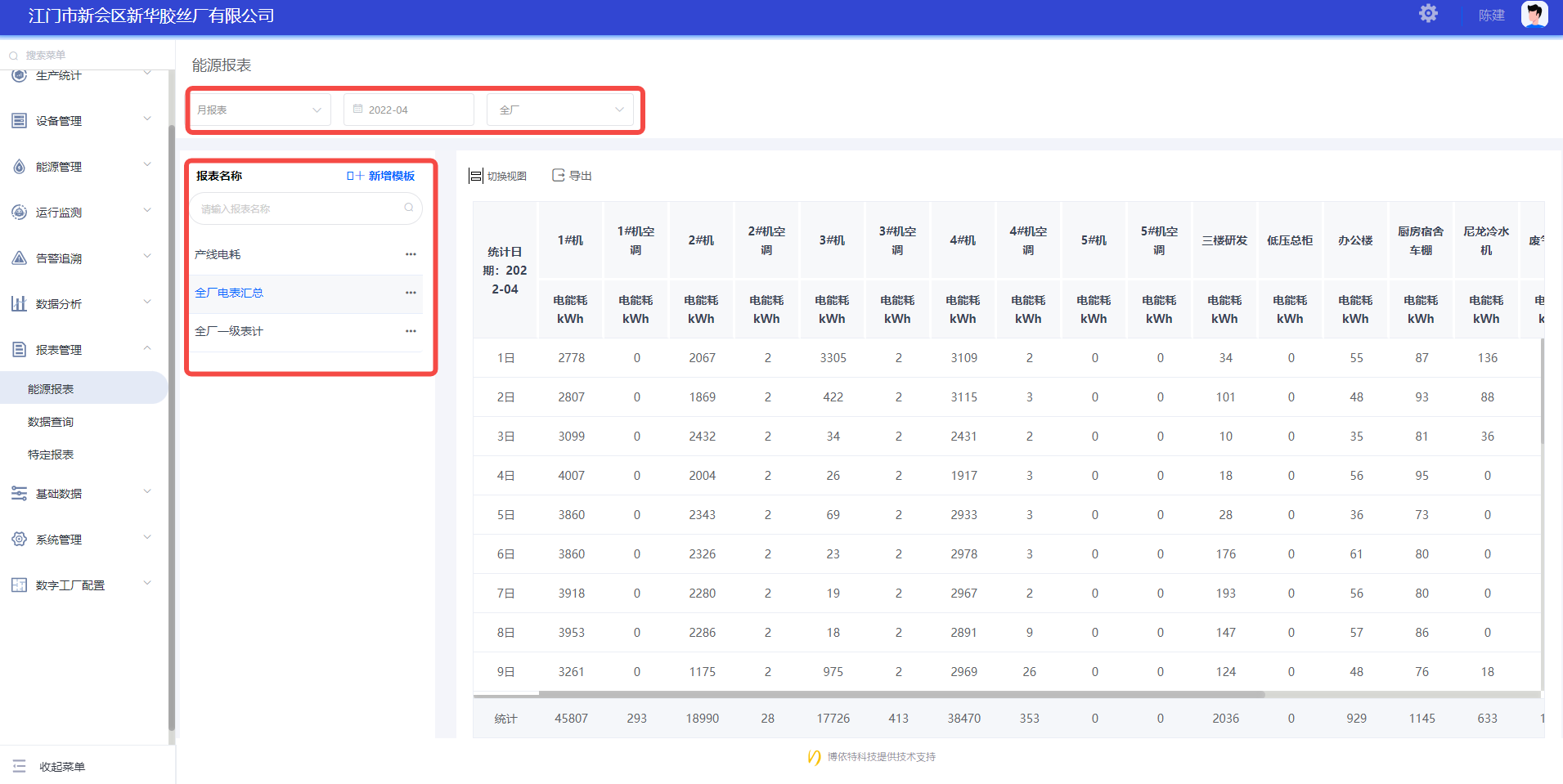 報表是新華膠絲廠生產(chǎn)數(shù)據(jù)匯總的主要形式。報表管理模塊分為定制化報表和自定義報表兩大類別,實現(xiàn)自動抄表;能耗報表自動生成;并支持用戶進(jìn)行自定義報表。報表管理模塊能夠有效解決企業(yè)生產(chǎn)報表種類、數(shù)據(jù)量繁多,統(tǒng)計耗時長,工作量大等問題,同時能夠提高報表數(shù)據(jù)的準(zhǔn)確性和實時性。(報表支持EXCEL導(dǎo)出)。
