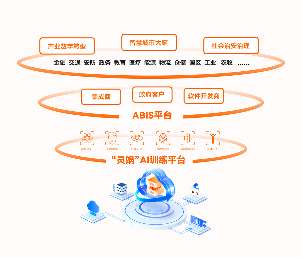 智慧城市、企業數字化轉型過程中,“一場景一部署、一場景一數據庫”,存在算法研發周期長、成本高,多廠商算法不兼容、系統重復建設、數據孤島等一系列的問題。針對這些痛點,為了實現低門檻、規模化的應用方案,眼神科技創新打造了兩大能力平臺——“靈媧”AI訓練平臺和“ABIS”多模態識別統一平臺,提高算法生產效率、降低AI應用門檻。