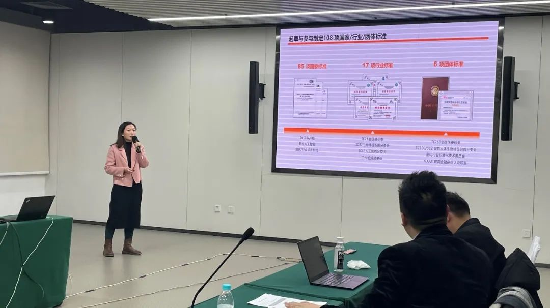 會上,北京眼神科技有限公司品牌市場總監張會介紹了公司的核心技術、場景落地能力和市場機會、展示了專家團隊、國家級榮譽、專利標準等硬核實力。